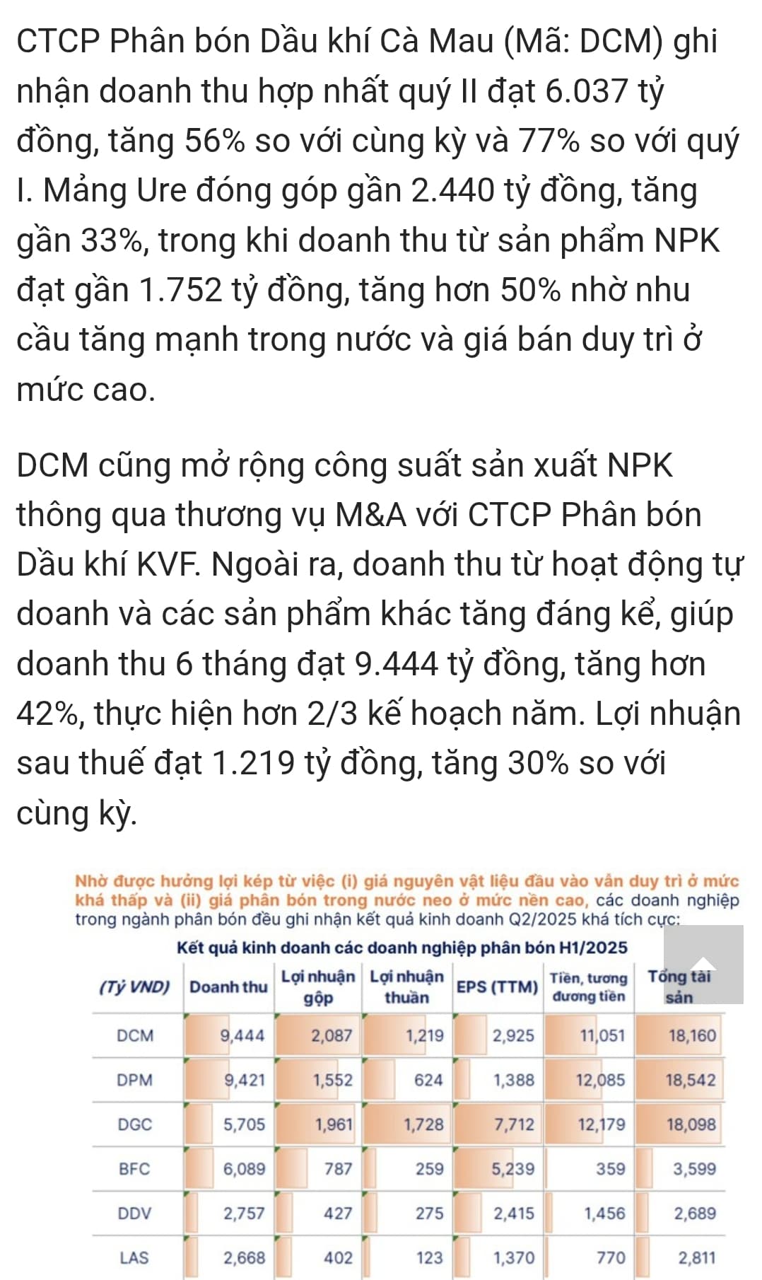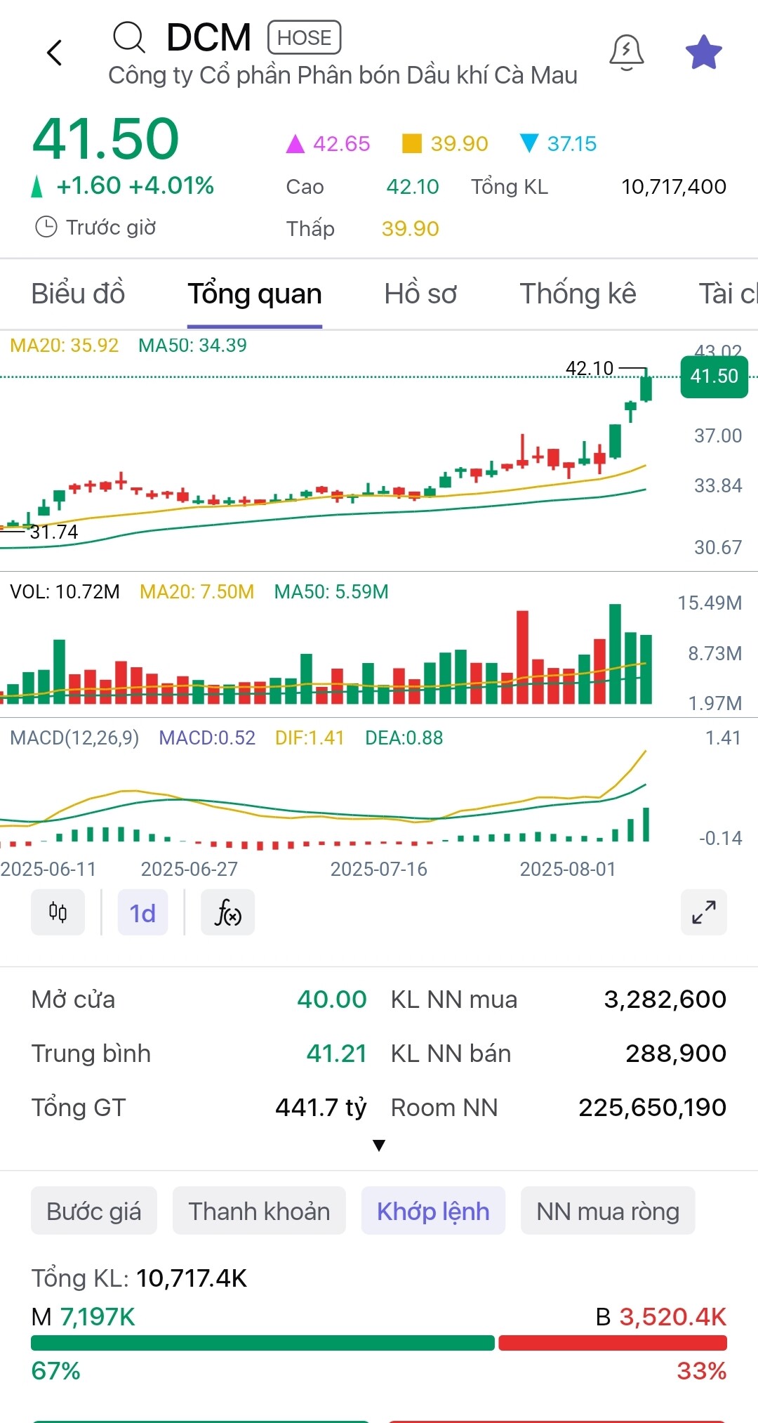 Tiền lớn vào DCM rất mạnh, cao hơn nhiều so với các cổ phiếu khác của họ phân bón.