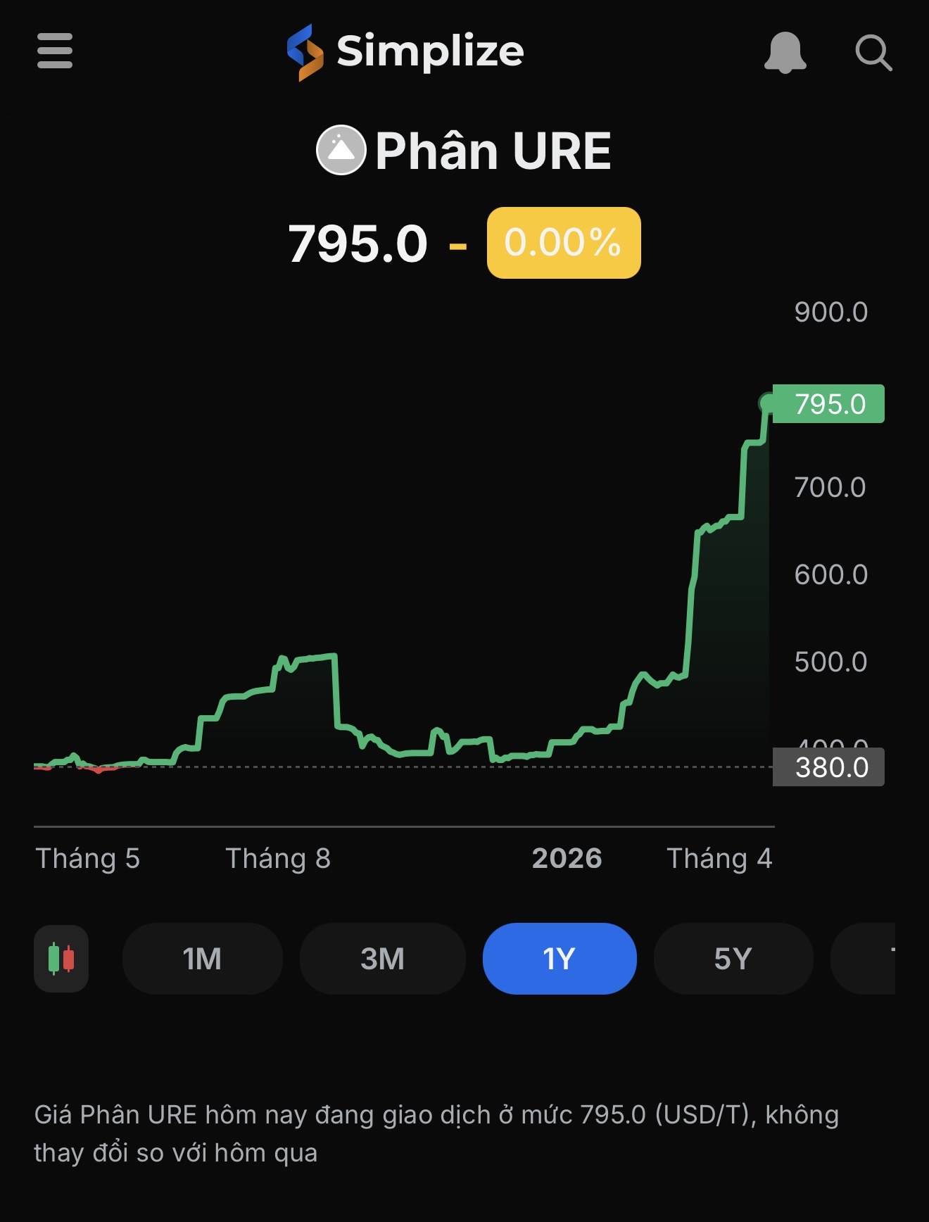 Giá Phân URE hôm nay vẫn đang giao dịch ở mức cao tỷ lục 795.0 (USD/T).