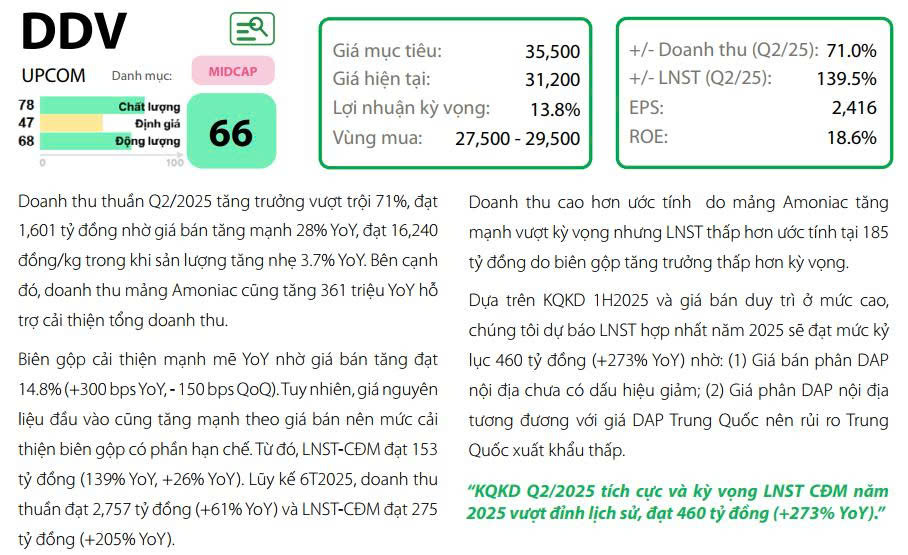 Nếu công ty tiếp tục duy trì được biên lợi nhuận vượt trội và dòng tiền ổn định, DDV có khả năng ghi nhận mức lợi nhuận kỷ lục cả năm 2025, khẳng định vị thế vững chắc trong ngành sản xuất phân bón phức hợp trong nước.