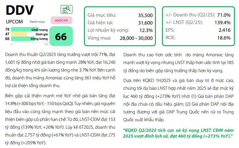 Trong bối cảnh giá DAP duy trì cao và rủi ro cạnh tranh từ Trung Quốc thấp, triển vọng của DDV vẫn rất tích cực trong ngắn và trung hạn.