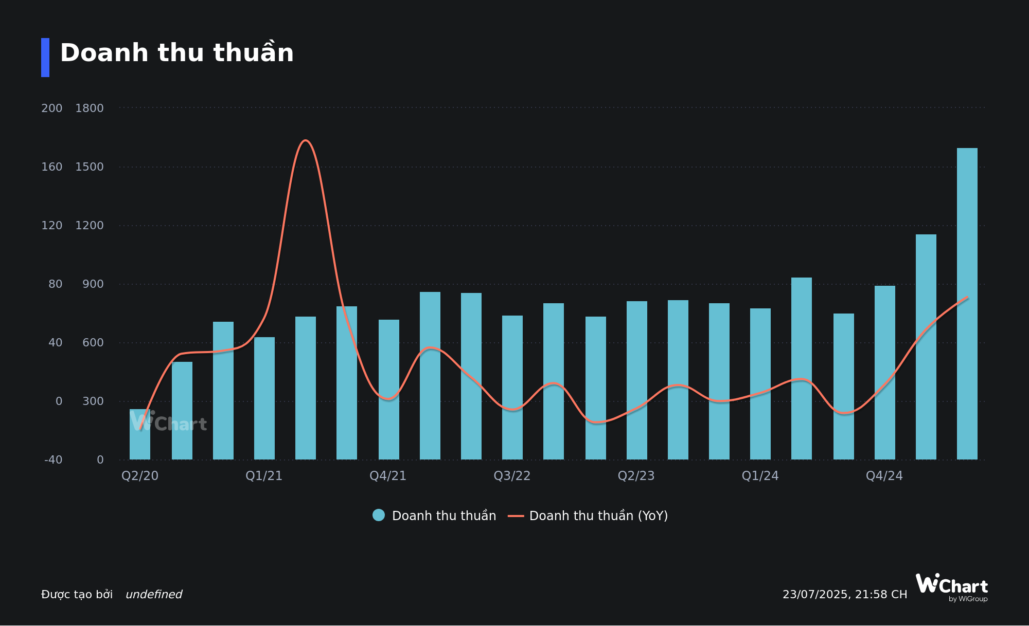 Doanh thu thuần tăng mạnh vượt đỉnh lịch sử của Q1/2025. Đánh dấu quý thứ 2 liên tiếp ghi nhận con số DTT >1.000 tỷ/quý.
