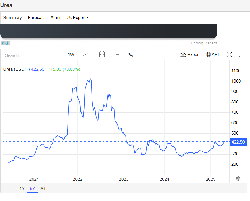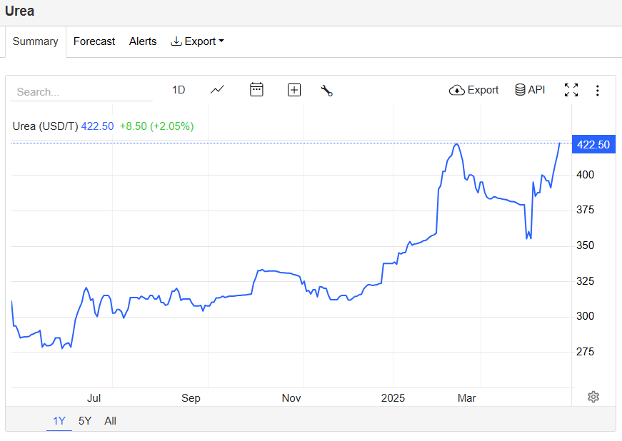 Đầu ra: giá phân ure hồi phục từ mức đáy đến giữa quý 1 trước khi giảm trở lại mức giá gần như tương đương vào cuối quý 1. Hiện tại mức giá Ure đã bắt đầu tăng trở lại từ mức thấp.