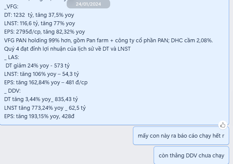 Còn nói cho bác rõ, mình đọc và hold DDV từ Quý 1.2024 (cũng có lúc trading 1 phần) nên đừng có lấy cái LN ra dọa mình, đoạn này mình qua nhóm Ure rồi.