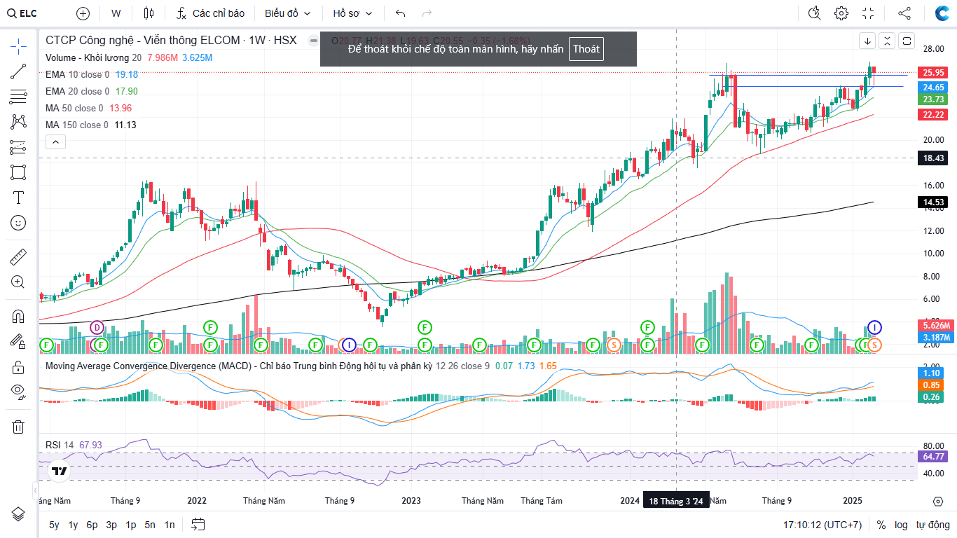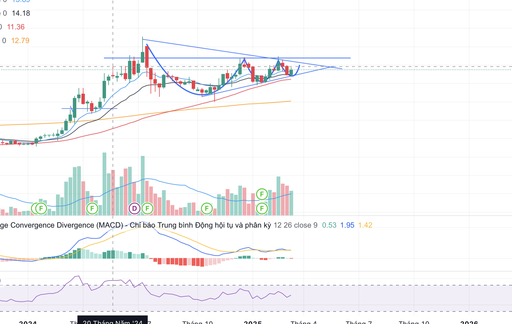 - TA: Sau nhịp tăng mạnh mẽ do BCTC quý 4 và năm 2024 tăng trưởng bằng lần, mạnh mẽ, giá cp đang tích luỹ trên EMA20, có sức mạnh giá khoẻ, giống mẫu hình lá cờ cao. Chú Ý: Thanh khoản TOS thấp nên khi tham gia với việc mua cp mức vừa phải với KL giao dịch hàng ngày. Vùng mua …. cmt…