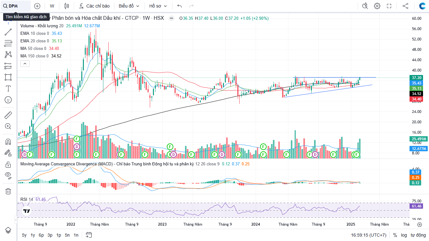 - Kỹ thuật: DPR đã có nhịp tăng tốt khoảng 14% từ đáy và đang tich luỹ lại (có thể chưa mạnh mẽ), rung rũ tốt, cũng như đang vùng cản nhẹ,…để tiếp tục đi lên cho Năm 2025. Vùng nến giá kiến tạo để đi lên…