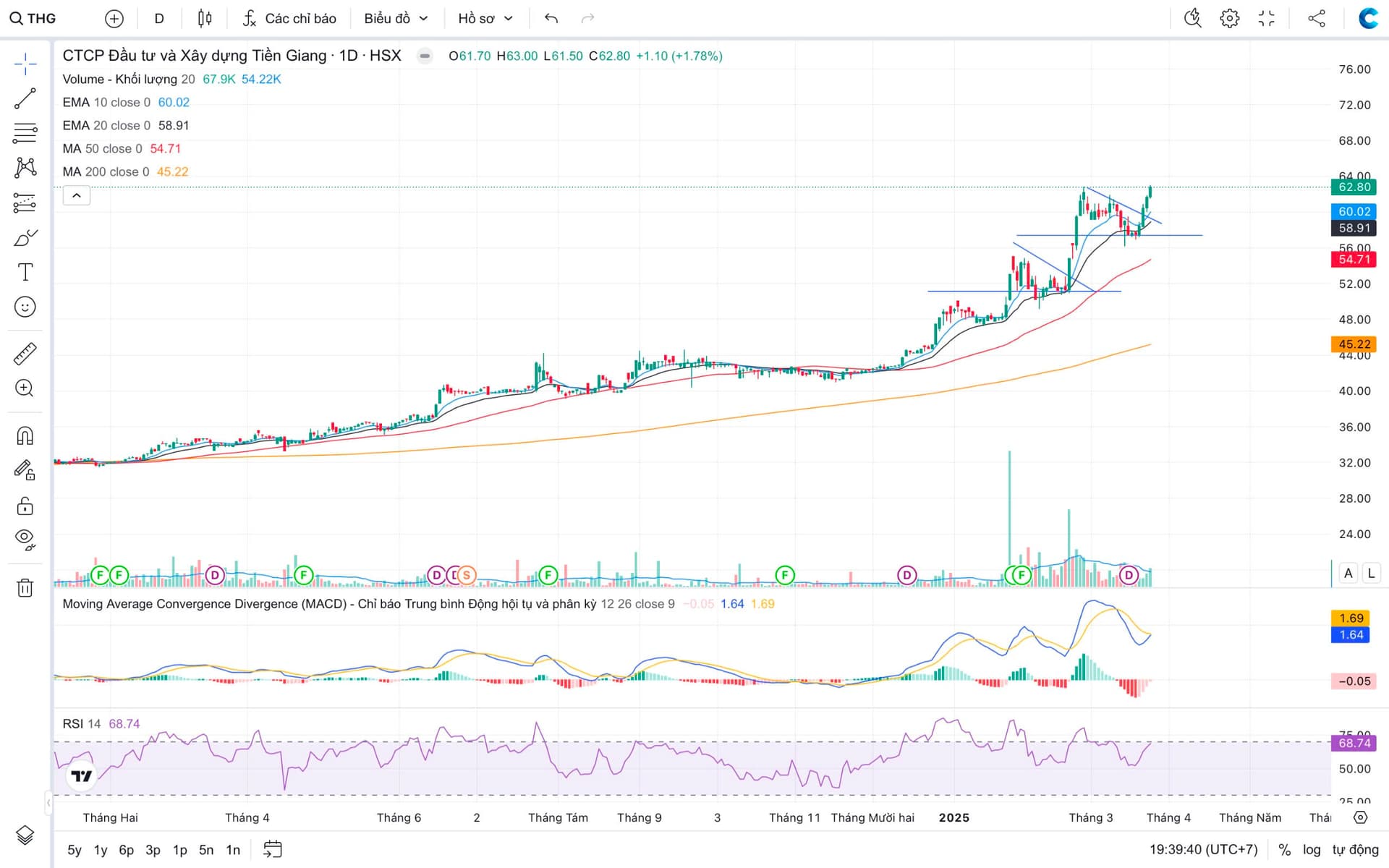 THG - khi đã NGON và thu hút dòng tiền đã có thanh khoản tăng lên hơn giai đoạn trước, đủ để ACE tham gia vừa phải với vùng rủi ro thấp vì tiềm năng lãi rất cao vì rất NGON như FA cũng như TA đã thể hiện