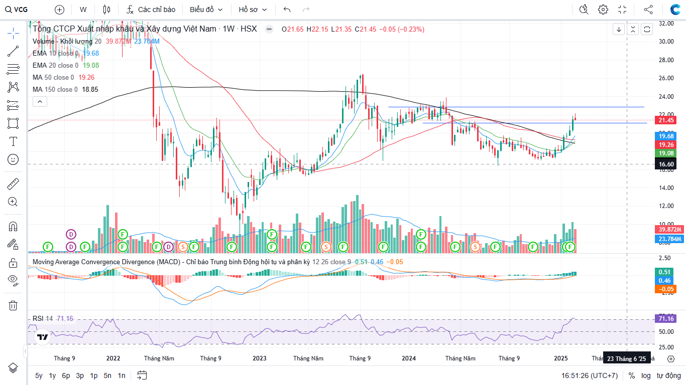 - Về đồ thị kỹ thuật: Sau giai đoạn tạo xu hướng tăng khá tốt, đồ thị giá HVN đang giao động tích lũy hẹp hơn và chặt tạo nền giá kiến tạo, vol giao dịch cũng thấp đi đáng kể. Có thể đang tạo mẫu hình VCP vào giai đoạn cuối để tiếp tục tăng giá. Nền giá đã có 2 lần thu hẹp độ biến động,…