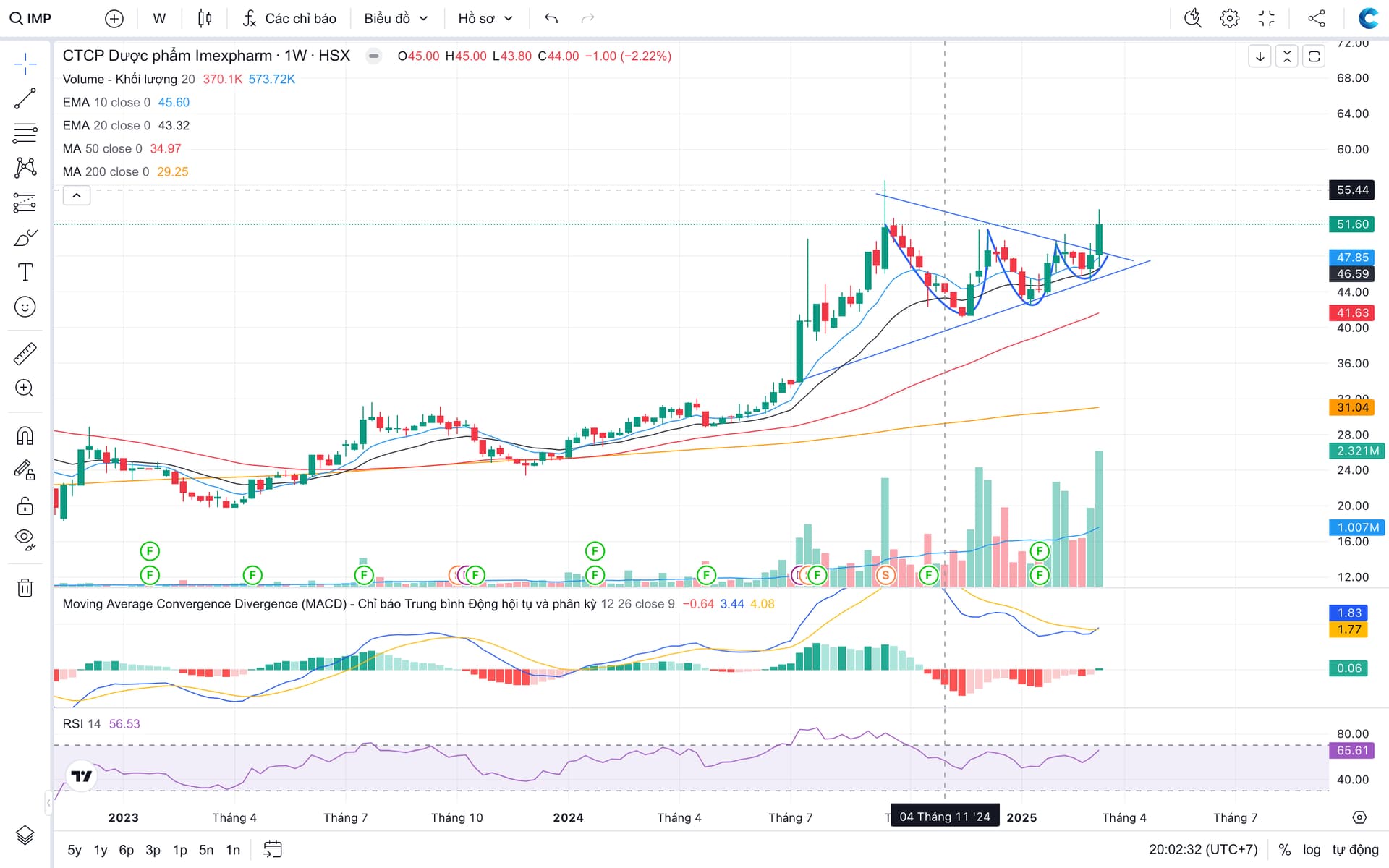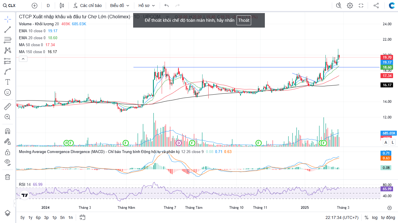 - TA: Dòng tiền đã kỳ vọng và đã đẩy giá CTI từ đáy tăng khoảng 40%, vượt đỉnh 52 tuần. Có xu hướng tăng tốt, Bám sát EMA10, 20. Có cú break fail về dưới EMA20….