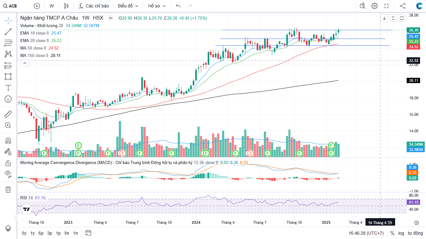 Những Bank cũng chuẩn bị vượt đỉnh phía sau có thể còn điểm mua: ACB, MBB, VIB