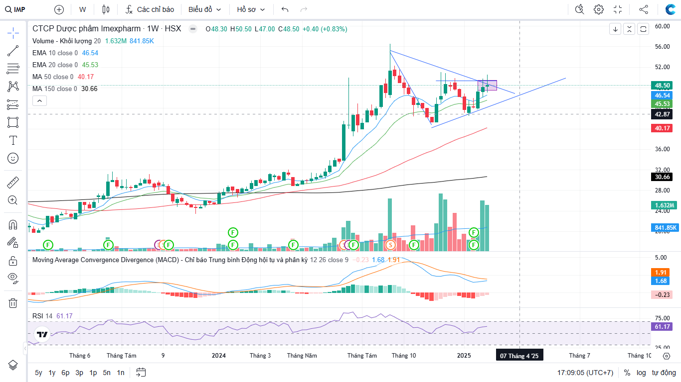 Xuất hiện trong vào ngày 9/2 vùng giá mua 52-53, và tiếp tục phiên 11/2 về vùng hỗ trợ 49-50 với những thông tin cơ bản của một cổ phiếu rất tiềm năng với khả năng upsize cao khi đang xây dựng nền giá kiến tạo, mẫu hình lá cờ đuôi nheo - Cho tầm nhìn trung hạn