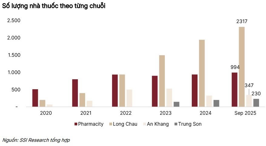 Đặc biệt, các thay đổi về khung pháp lý như Thông tư 26/2025/TT-BYT cho phép kê đơn thuốc mãn tính lên đến 90 ngày và việc siết chặt kiểm soát thuốc giả đang tạo ra lợi thế tuyệt đối cho các chuỗi có nguồn gốc sản phẩm rõ ràng và danh mục thuốc kê đơn phong phú như Long Châu.
