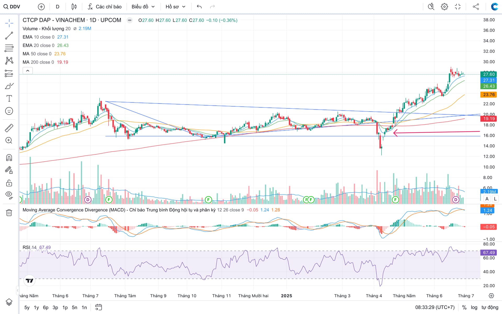 DGW có câu chuyện tăng trưởng rõ ràng: doanh thu/ lợi nhuận tăng đều, ROE ~21% trung bình dài hạn, chưa lỗ quý nào, lịch sử chia cổ tức tiền mặt đều đặn → nền tảng cơ bản khỏe.