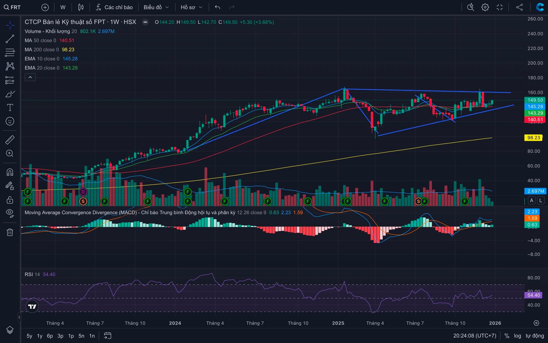 Trong báo cáo cập nhật mới nhất, SSI Research (22.12.2025) đã duy trì khuyến nghị Khả quan đối với cổ phiếu FRT của Công ty Cổ phần Bán lẻ Kỹ thuật số FPT, với mức giá mục tiêu cho 12 tháng tới đạt 174,000 đồng một cổ phiếu. SSI nhận định rằng dù thị giá của FRT đã phản ánh phần nào kỳ vọng của thị trường, mức định giá P/E dự phóng cho năm 2026 hiện ở mức 26 lần vẫn thấp hơn đáng kể so với mức trung bình lịch sử 40 lần, trong khi chất lượng lợi nhuận đang có những cải thiện rõ rệt và bền vững hơn bao giờ hết.