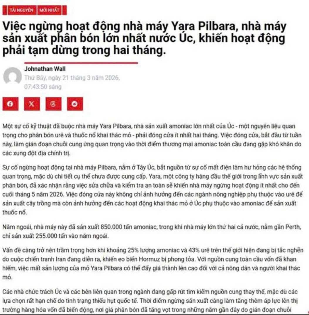 Động thái này diễn ra sau khi chi phí phân bón tăng mạnh do chiến sự và biến động trên thị trường năng lượng, khiến các đầu vào sản xuất như khí tự nhiên trở nên đắt đỏ hơn. Quyết định hạn chế xuất khẩu của Trung Quốc được xem là cú sốc đối với thị trường quốc tế vốn đã phải đối mặt với chuỗi cung ứng bị thắt chặt.