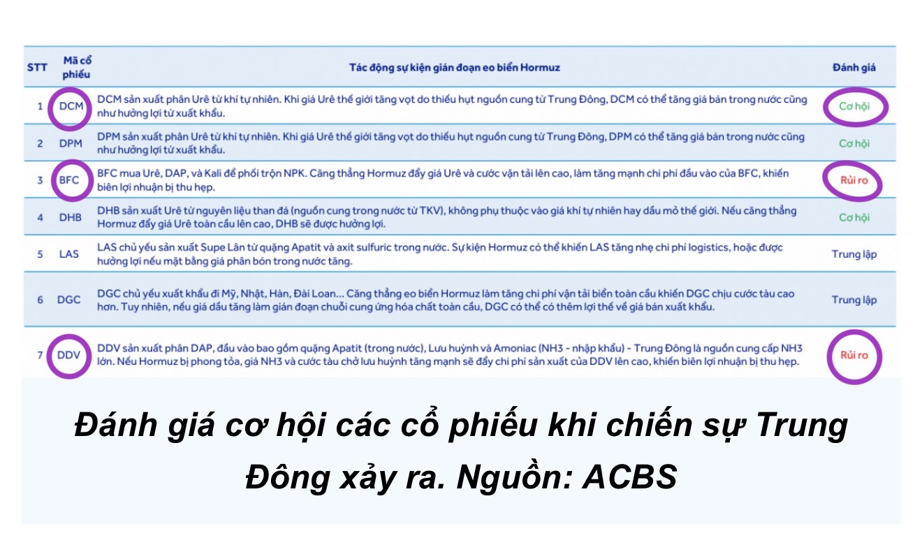 DCM , DPM , DHB là cơ hội còn các cty phân khác là trung lập và rủi ro
