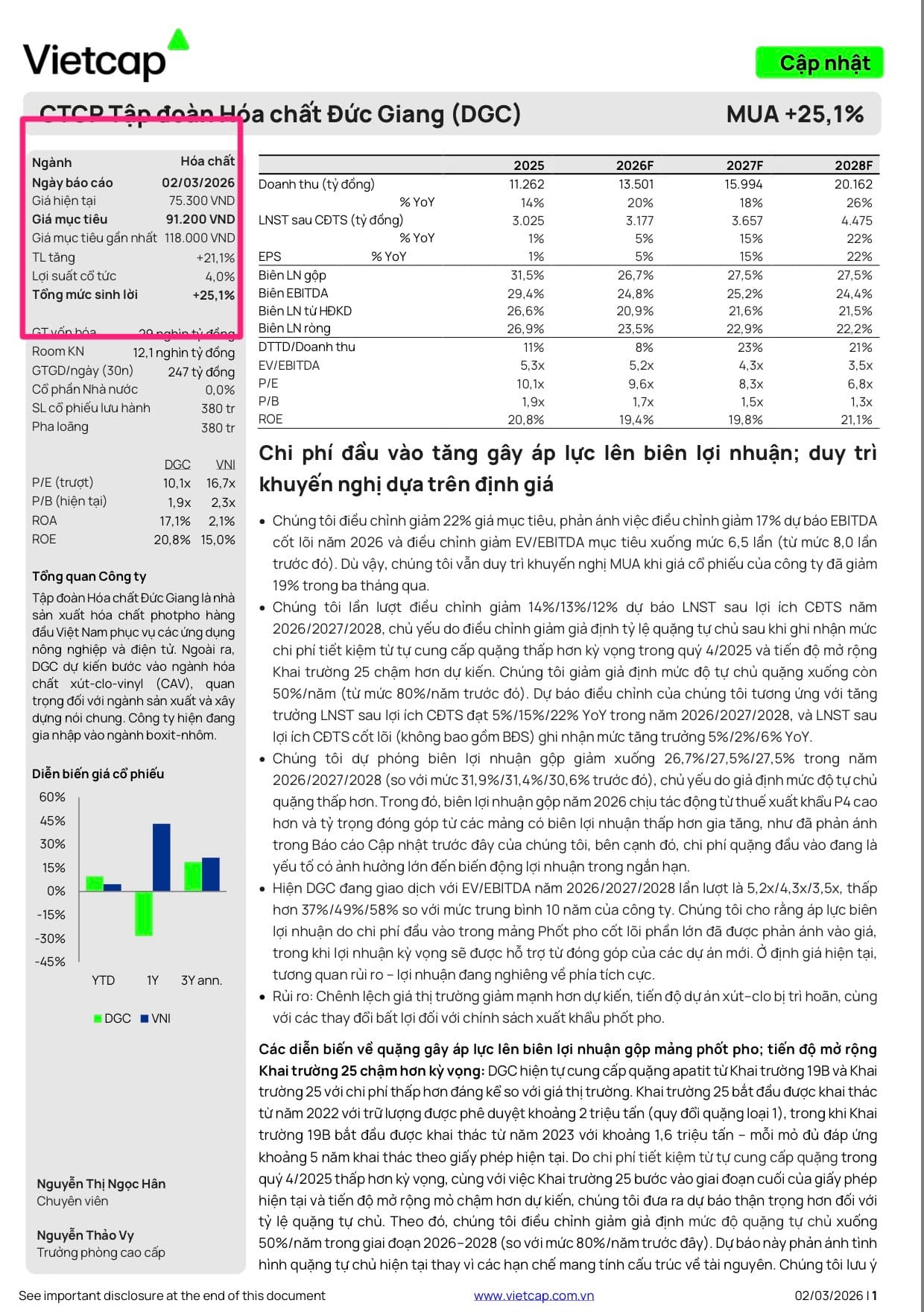 Cổ nào cũng tốt…. Vấn đề tốt khi nhặt ở vùng giá nào ? Thời điểm nào để có % lợi nhuận khi về đến TK của mà thôi. Với DGC ngay đầu tháng 3, ngày 02/3/2026 đã được Viet cap định giá mục tiêu 90.x ….nhưng lúc đó mình chưa thấy là rẻ mà lại tăm tia tới DDV và DCM cơ ……