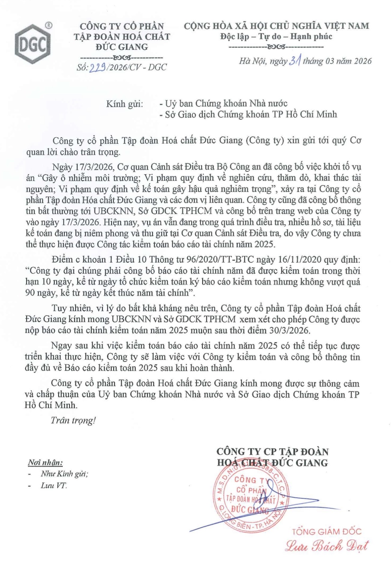 DGC: Xin chậm nộp BCTC kiểm toán năm 2025