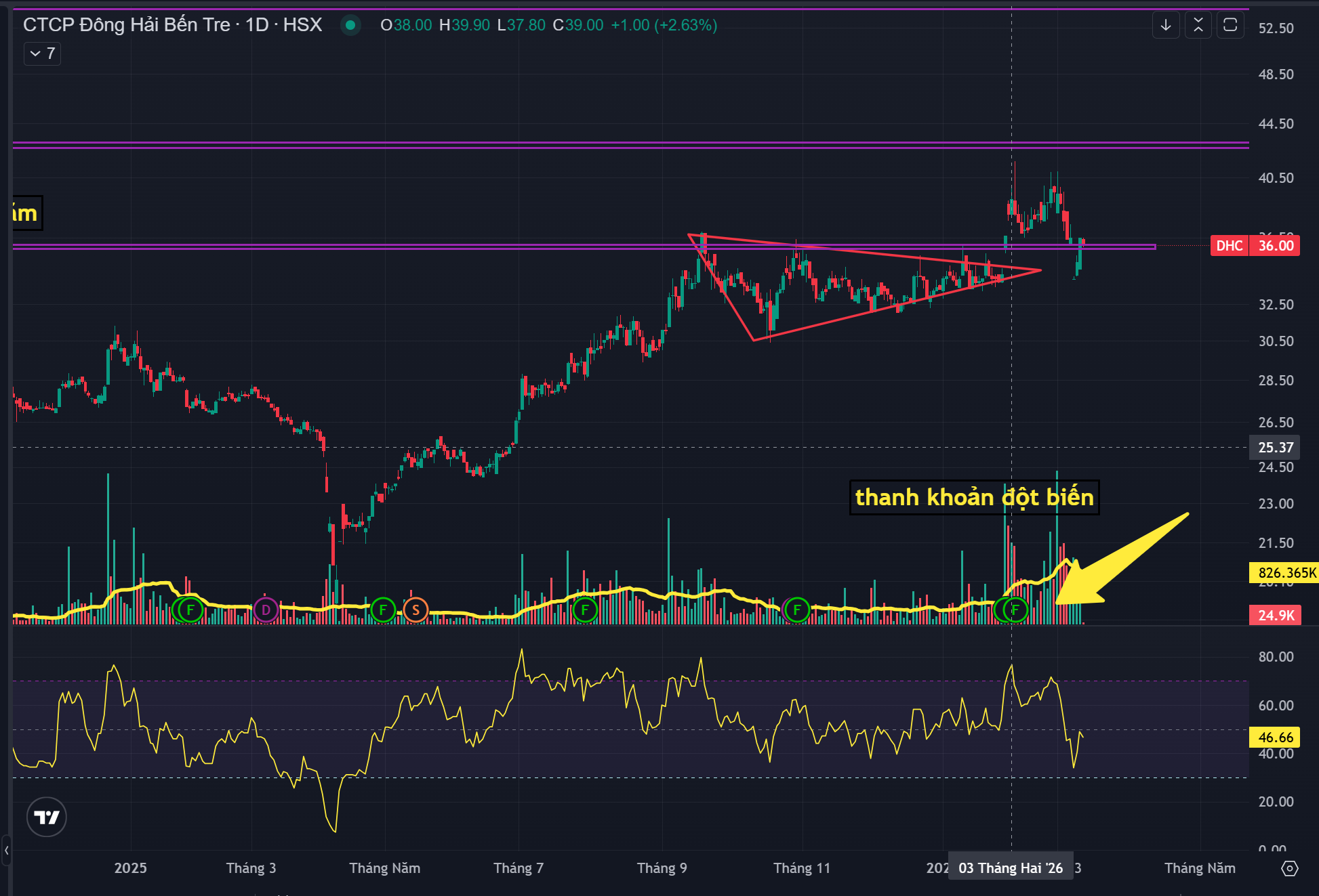 Chiến lược: Chờ nhịp pullback giữ 36 với khối lượng thấp để vào, hoặc đợi nền mới. Stop loss nếu mua quanh dưới 34.
