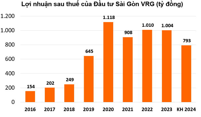 Năm nay, Đầu tư Sài Gòn VRG lên kế hoạch doanh thu đạt gần 5.388 tỷ đồng, lợi nhuận sau thuế đạt gần 793 tỷ đồng, giảm lần lượt 19% và 21% so với kết quả năm ngoái.