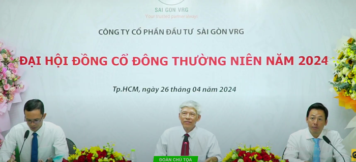 Chiều 26/4, CTCP Đầu tư Sài Gòn VRG (Mã: SIP) tổ chức Đại hội đồng cổ đông (ĐHĐCĐ) thường niên năm 2024 theo hình thức trực tuyến. Đại hội kết thúc với tất cả tờ trình được thông qua.