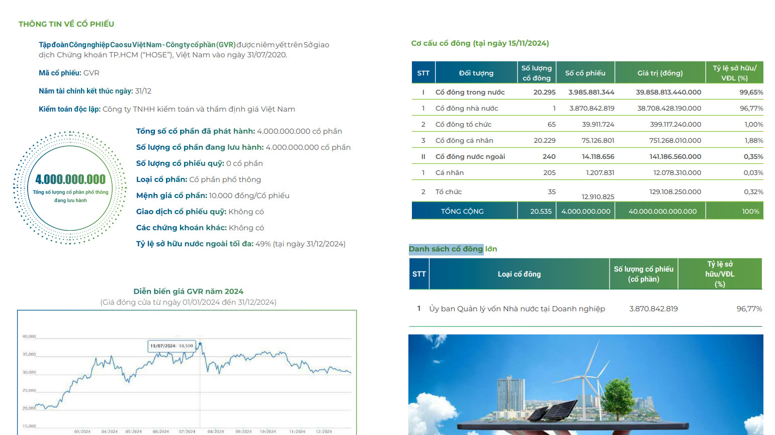 Một trong những đặc điểm quan trọng nhất khi phân tích cổ phiếu GVR chính là cấu trúc sở hữu cổ đông. Đây là yếu tố quyết định trực tiếp đến khả năng biến động giá khi dòng tiền lớn tham gia thị trường.