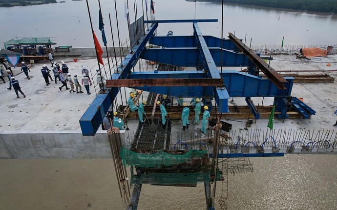 2 nhịp cầu chính đầu tiên bắc qua sông Đồng Nai tại hai trụ P19-P20 và trụ P20-P21 được hợp long vào chiều 12.9. Sau đó, các đơn vị sẽ hoàn thiện mặt cầu, lắp lan can, chiếu sáng…