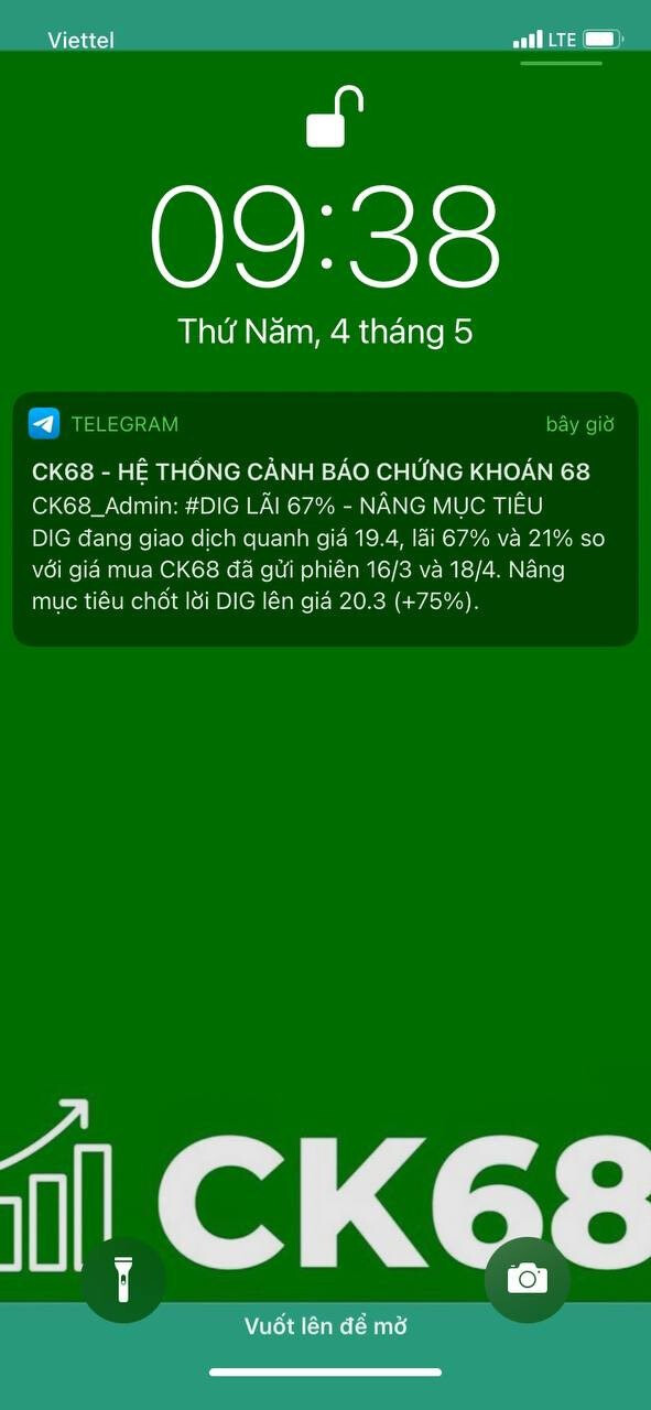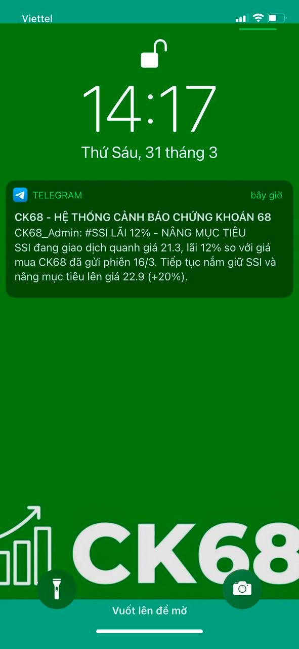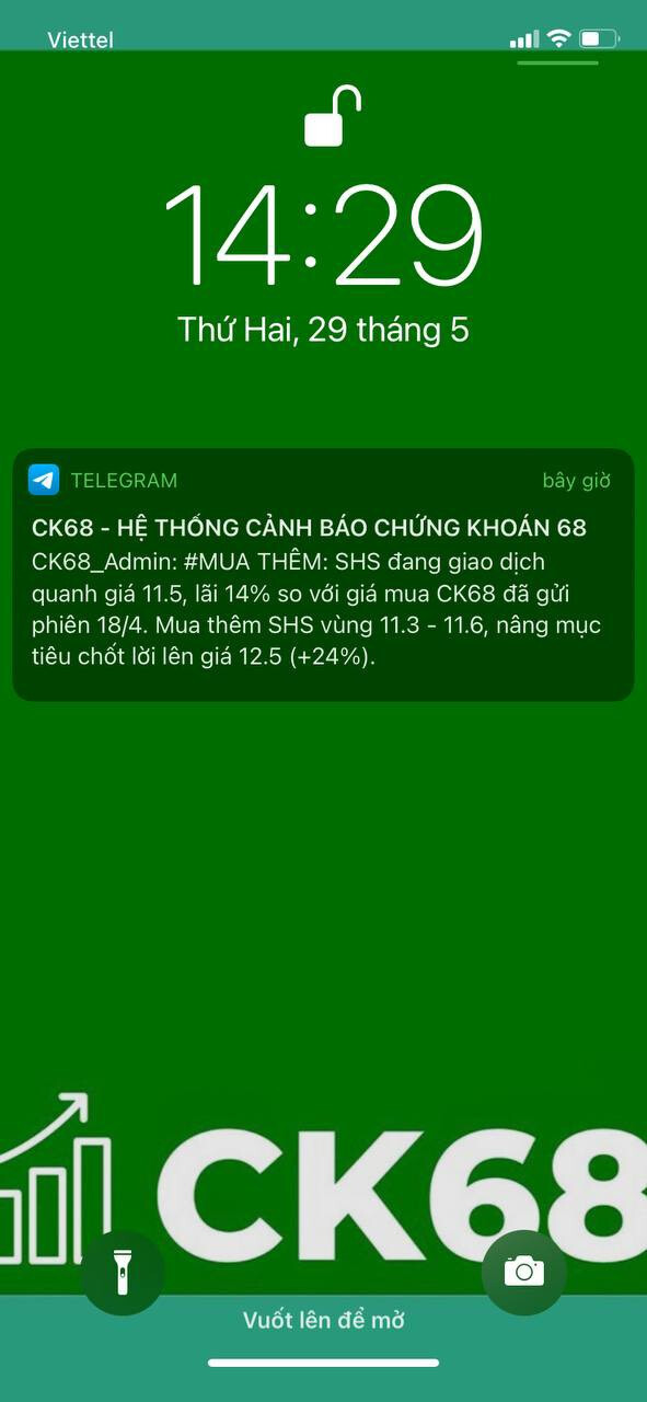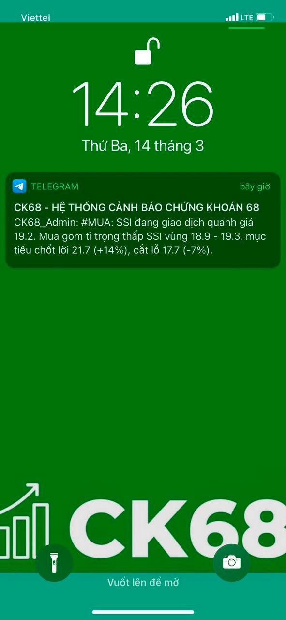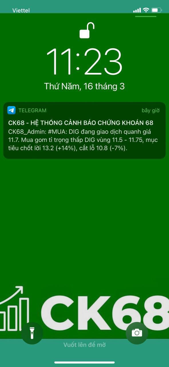 Trích một vài cảnh báo giao dịch CK68 đã gửi về điện thoại Thành viên trong phiên: