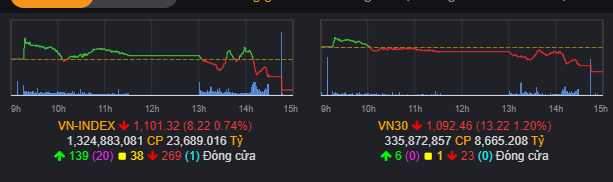 VNINDEX có phiên rung lắc đáng kể đầu tiên trong quá trình đi lên mạnh mẽ… Các chỉ số nhóm vốn hóa lớn, trung bình, nhỏ đều có mức giảm điểm lớn hơn chỉ số chung, đặc biệt là VNMID có mức giảm điểm lớn nhất. Điều này đang thể hiện áp lực chốt lời đang xuất hiện trên diện rộng, và có vẻ mạnh hơn ở nhóm Vốn hóa vừa.