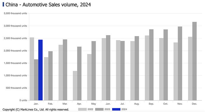 - Đến tháng 11/2023, doanh số bán hàng đã tăng 27,4% so với một năm trước đó lên 2,97 triệu xe, sau đó lên 3,15 triệu vào tháng 12/2024, tăng 23,5%. Hiệp hội các nhà sản xuất ô tô Trung Quốc dự kiến doanh số bán ô tô của nước này năm 2024 sẽ tăng lên khoảng 31 triệu xe. Doanh số bán ô tô tăng cao thúc đẩy nhu cầu cao su tự nhiên. Theo Michelin, vào tháng 12/2023, nhu cầu lốp dành cho xe mới của Trung Quốc đã tăng 30% so với một năm trước đó.