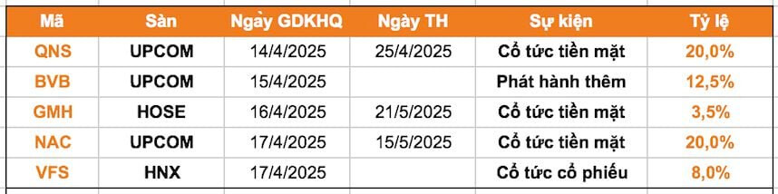 Lịch chốt quyền cổ tức tuần 14-18/4