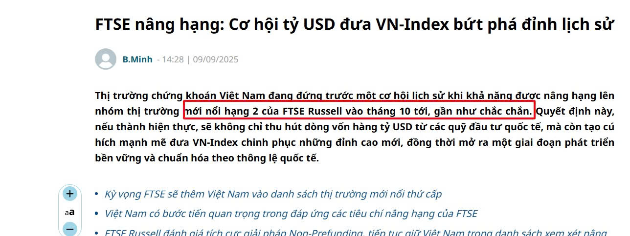 CHATGPT khi được hỏi, xác tín : ko có mốc time này trong thông lệ của FTSE thông báo v/v nâng hạng TT cho các nước / năm.