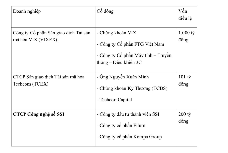 TCBS: Đẩy mạnh sàn TCEX, tăng vốn từ 3 tỷ lên 101 tỷ đồng. Cơ cấu cổ đông gồm ông Nguyễn Xuân Minh(Tổng giám đốc) nắm 89%, Chứng khoán Kỹ Thương (TCBS) góp 9,9% và TechcomCapital sở hữu 1,1%.