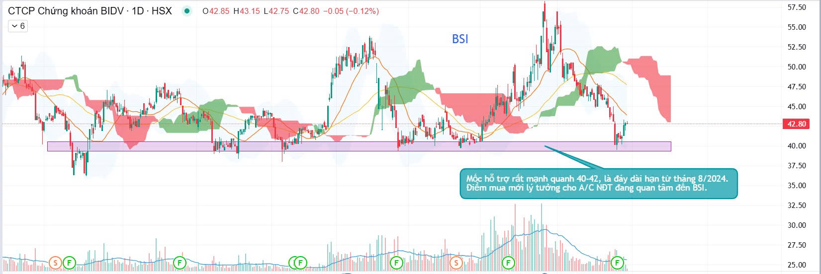 Chiến lược giao dịch: Mua chậm, mua ở thời điểm chỉ số giảm sâu hoặc cổ phiếu về test lại các mốc hỗ trợ mạnh như đường MA20-50 hoặc đường trendline nối các đáy dài hạn, giá về lại đỉnh của năm 2024,…