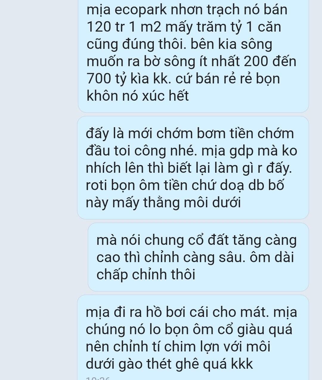 mịa ecopark nhơn trạch nó bán 120 tr 1 m2 mấy trăm tỷ 1 căn cũng đúng thôi. bên kia sông muốn ra bờ sông ít nhất 200 đến 700 tỷ kìa kk. cứ bán rẻ rẻ bọn khôn nó xúc hết