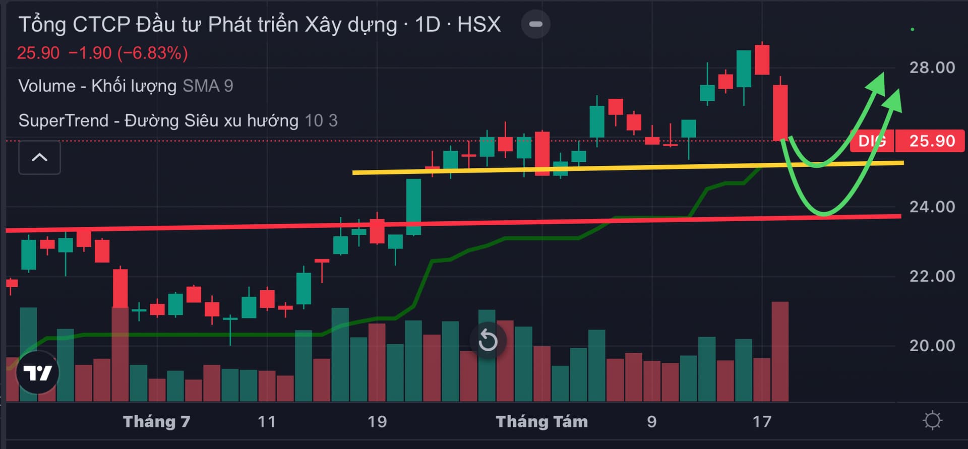 24 là mốc kháng cự khá mạnh của Dig, theo thị trường hiện tại thì thị trường vẫn sàn hàng loạt, khả năng vào phiên ngày t3 mới có đảo chiều