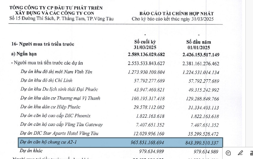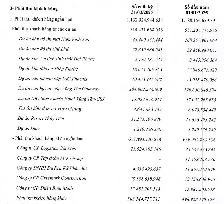 Tính đến ngày 31/3/2025, tổng nợ phải trả của DIG tăng 4,1% so với thời điểm đầu năm lên 10.928 tỷ đồng, bao gồm 769 tỷ đồng phải trả người bán ngắn hạn, 2.589 tỷ đồng người mua trả tiền trước ngắn hạn, 3.437 tỷ đồng phải trả ngắn hạn khác.