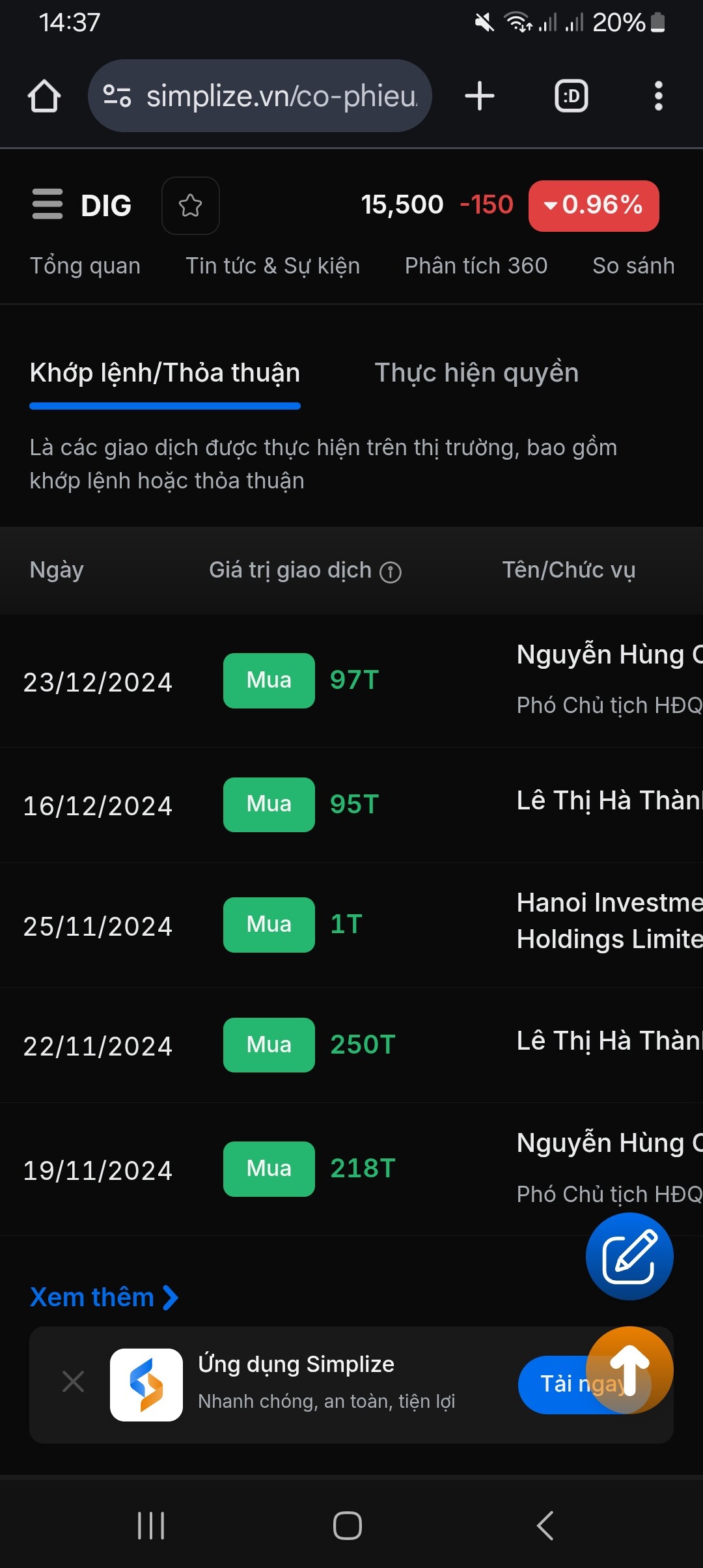 mấy câu rẻ quá rồi và người nhà còn gom, nghe quen quen nhưng bảng điện nó lại nói khác. Cứ chủ tịch và người nhà mua = cổ phiếu sẽ ngon thì chơi chứng dễ quá. Cứ theo dõi thôi, trong ngắn hạn mà ôm DIG thì thiệt đơn thiệt kép còn dài hạn cũng chẳng ai biết, dài hạn là mấy năm? cổ đông DIG kẹp dài hạn chắc đông nhất sàn, cầm thêm vài năm nữa mà xx lần được thì cũng bõ nhưng ai biết được? Chờ DIG “có biến” mới quan tâm mua bán được, giờ vật vờ trôi dạt giữa 1x 2x, loanh quanh thế thôi