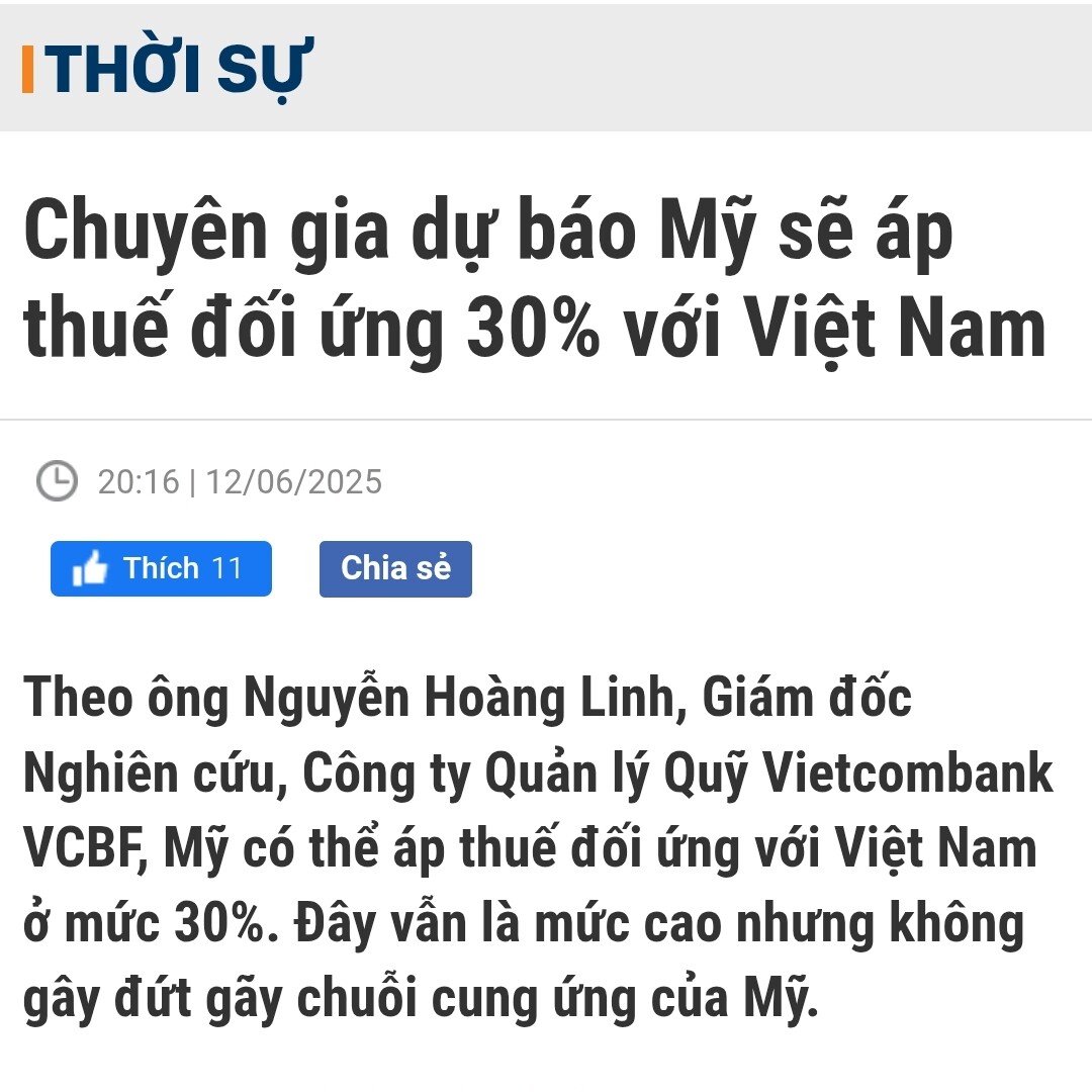 Giới tinh hoa đã có kế hoạch sẵn sàng cho thuế quan từ 30% trở zuống. Nói chung mức đó VN mình vẫn sẽ ổn và chấp nhận được.