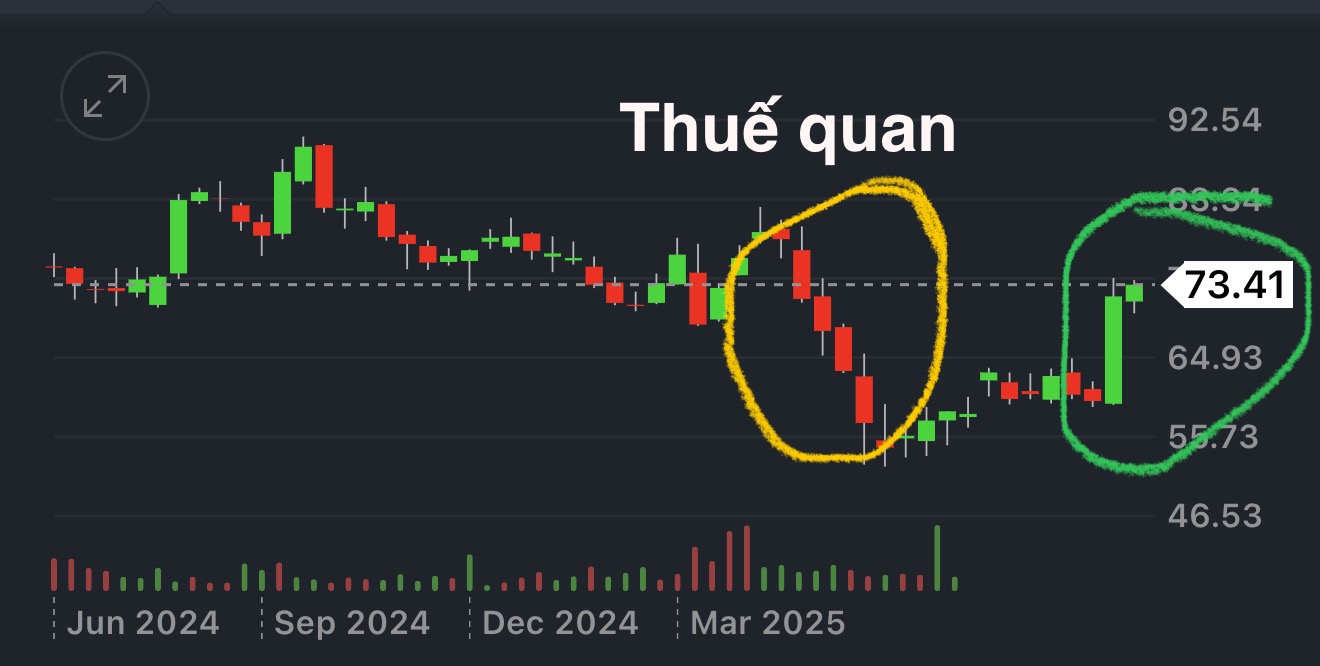 Không cần đoán mò, làm thầy bói, hãy nhìn cổ phiếu Nike của Mỹ (phần lớn sx tại VN) bị bán tháo sau sự kiện thuế quan của Trump hôm tháng 4. Hôm qua nay khi sắp công bố mức thuế quan sau đàm phán giữa VN-Mỹ nó mở gap tăng ầm ầm kkk