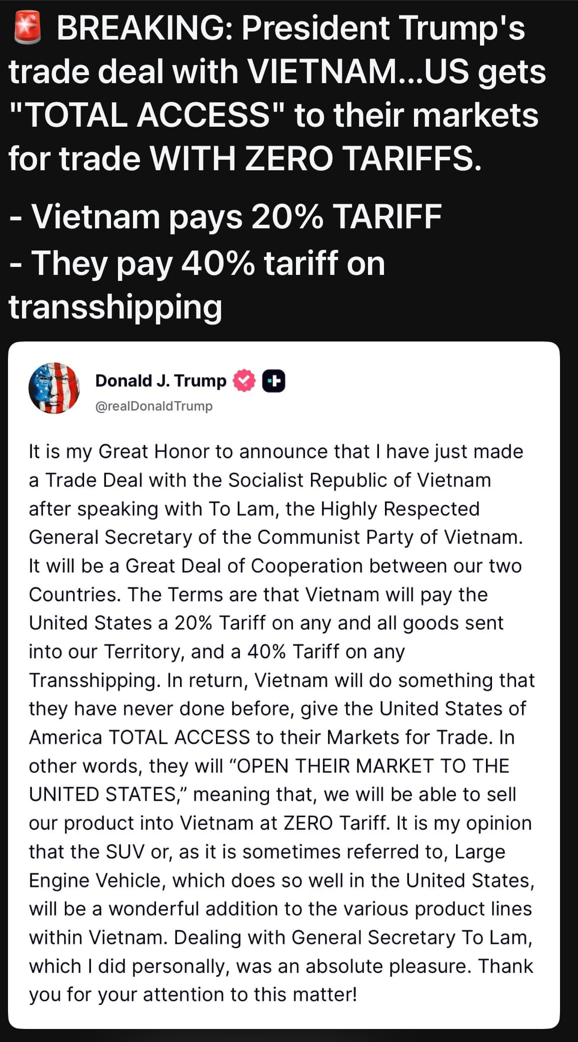 Đây là chỉ báo chính xác kết quả thuế quan Trump áp cho VN đấy, ae biết phải làm gì trước và không nghe bọn thầy bói hay tin đồn nhé kkk