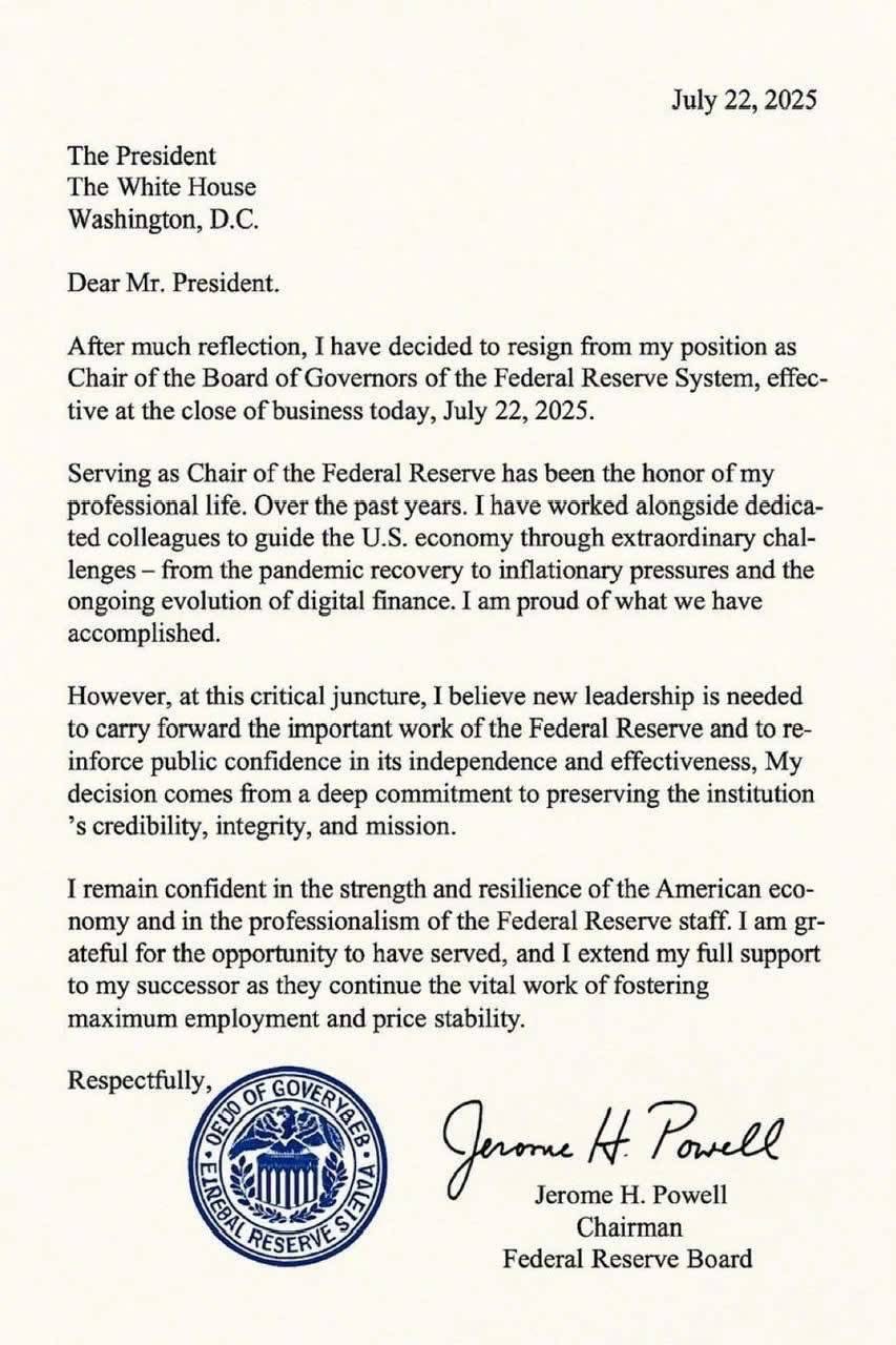 CT FED đã đệ đơn từ chức rồi, FED sẽ có CT mới và sẵn sàng hạ lãi suất thôi.