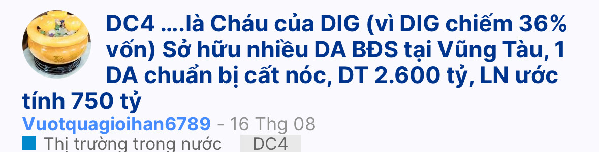 Buoc di hay của bác Tuấn, book DT va LN về với DIG, loi nhuận DC4 chia về cho DIG một phần.