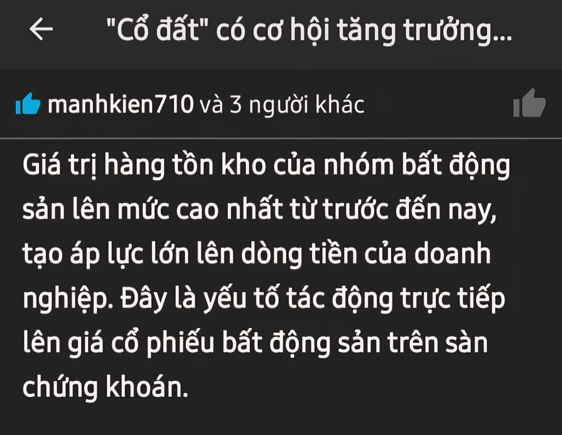 Kịch bản: Tồn kho lên đỉnh, nhà đất mất thanh khoản, DN BDS không xoay vòng được vốn, bán tháo, giá giảm về kỳ vọng của thượng tầng. Làm vòng mới.