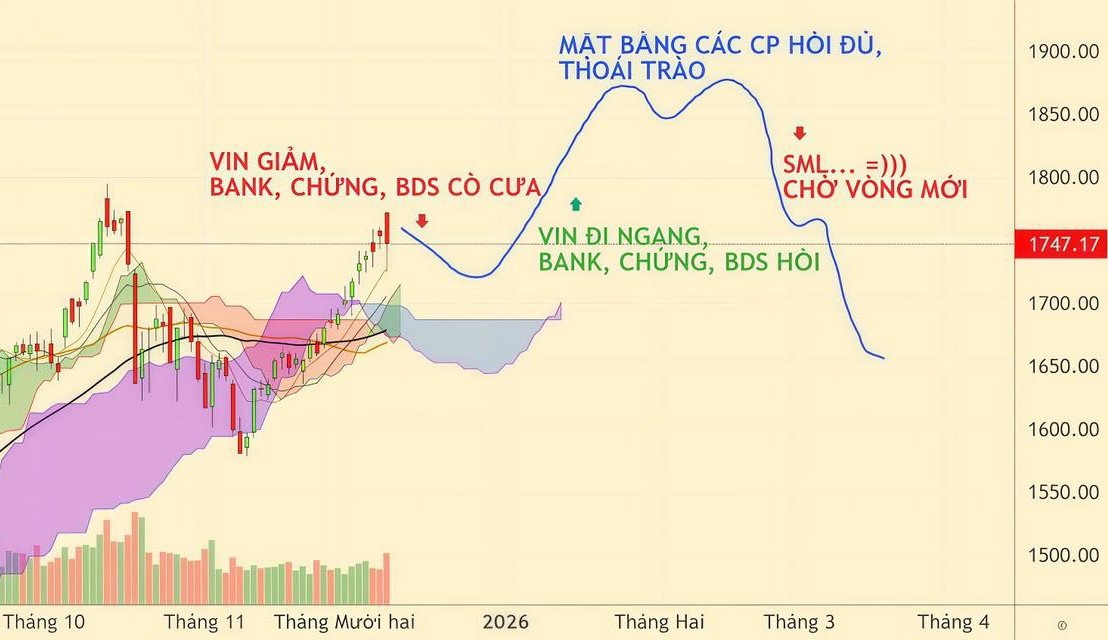 Timming đó Cụ, nhịp này VNI về quanh 1700, sau đội Bank, Chứng, Đất đặc biết Đất có quả nước rút mạnh với dự báo lợi nhuận tốt Q4 kéo VNI lên 1850-1900.