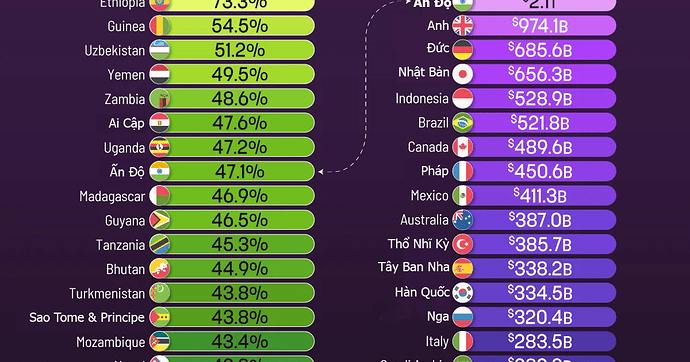Chuẩn roi. Nhóm mid có gdp cho là tu 500 tỷ mỹ _ 2k tỷ mỹ ,có ông nào tăng truonsgr dc 10% đâu. Vn đang top đó
