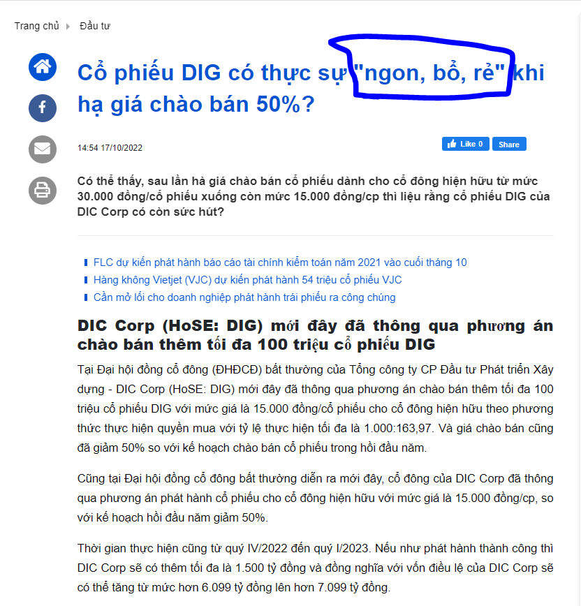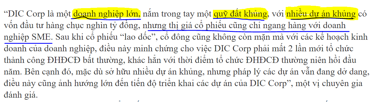 truyền thông đưa tin với câu hỏi NGON - BỔ - RẺ của DIG. Khi thị trường đi lên thì chỉ nói về cái tốt, toàn tin tốt xuất hiện. Khi thị trường đi xuống thì chỉ nói về cái xấu, nghi ngờ, và nhiều cái xấu đến dồn dập, đến nhiều. Đất vẫn 8000 ha.