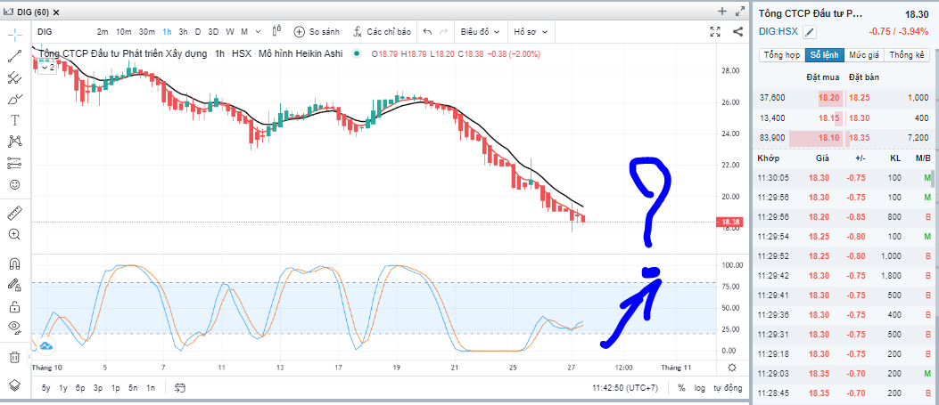 DIG sáng 27.10.2022. Nó kém hơn sáng 26.10.2022; nhưng vẫn hy vọng nó cầm máu ở đây. Vẫn đang 18.3 (-0.75) điểm. Chỉ cần DIG cầm máu không giảm nữa. Là ổn.