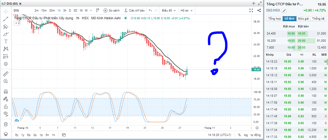 DIG không được như VnIndex, đi sau đến 3 nhịp xanh, đi sau bạn bè và các em út bất động sản khác, vẫn là câu hỏi đi lên rồi về nhà hay là muốn đi đâu nữa?