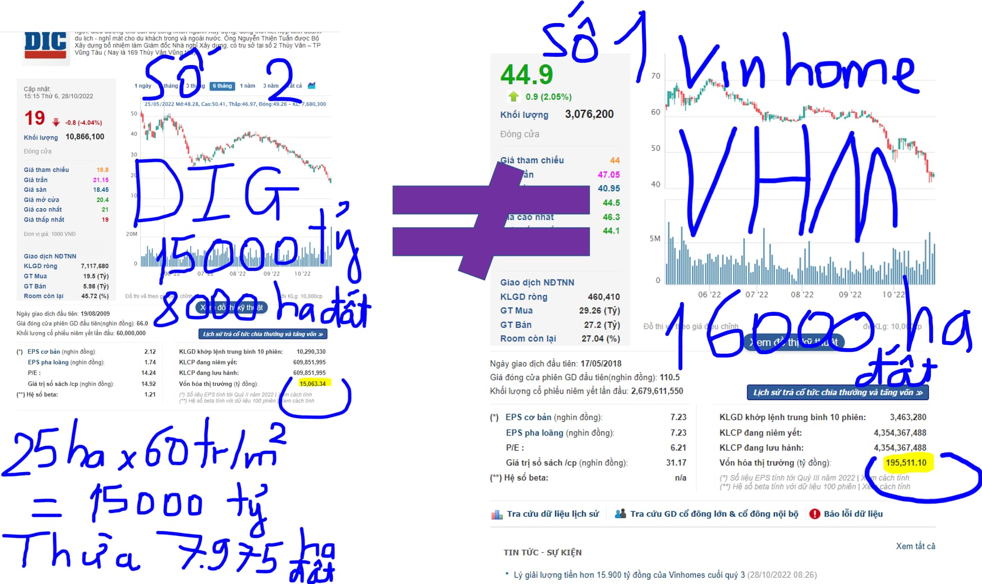 Mối liên quan giữa cổ phiếu A7 mua và A7 không mua so với việc lao dốc xuống đáy. Đất vẫn còn đó, chưa ai mất đất cả. DIG vẫn còn đủ 8000 ha đất