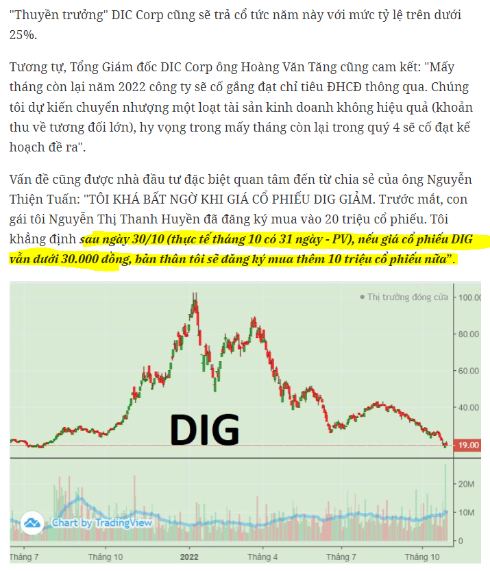 Câu hỏi chính của tuần sau là khi nào ông lãnh đạo có thông báo mua cổ phiếu? Việc mua là chắc chắn phải làm để giữ uy tín DIG. Và tuần sau là thời điểm duy nhất thích hợp.
